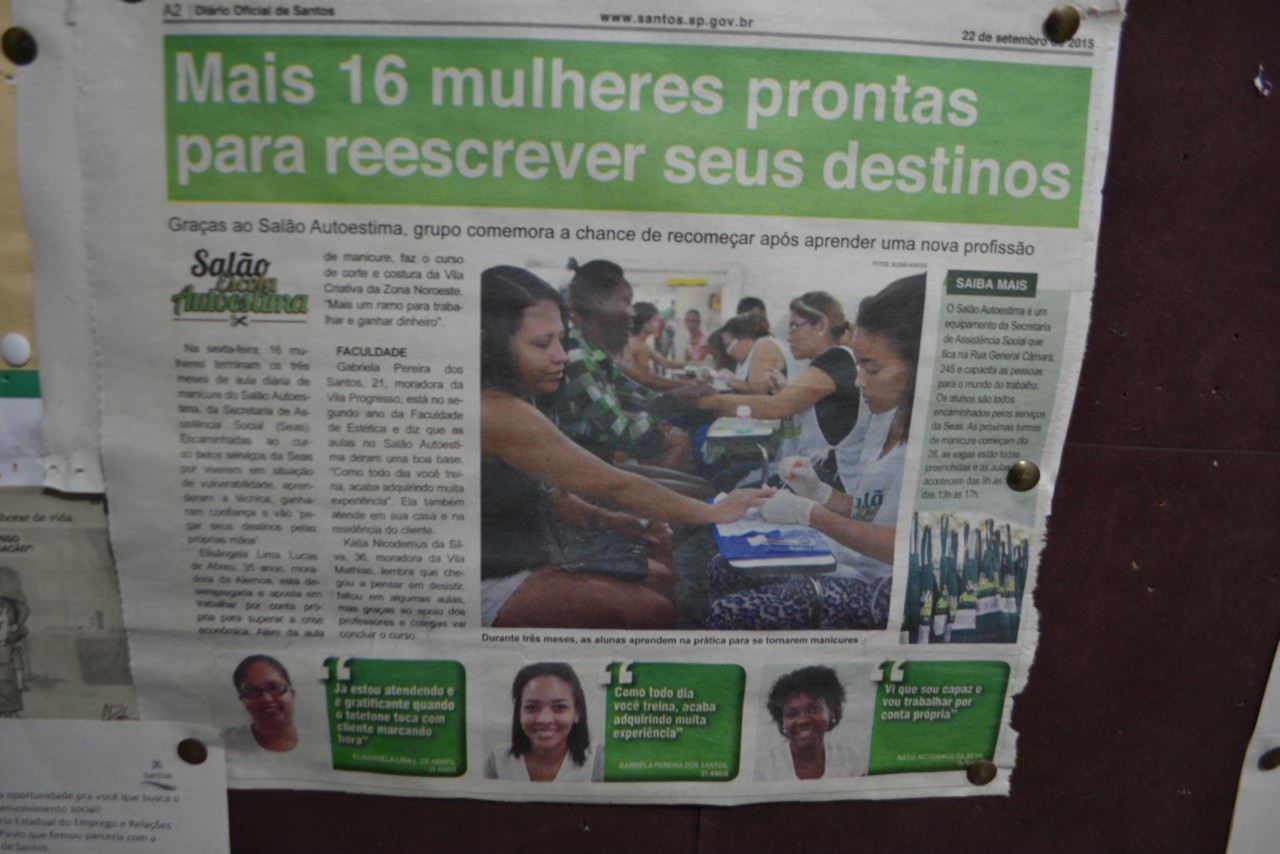 As atividades da comitiva prosseguiram com a visita ao segundo projeto agendado para o dia, o Salão Autoestima, instalado no Abrigo Provisório (R. General Câmara, 259 ? Centro ? Santos) em parceria com a Secretaria de Assistência Social da Prefeitura de Santos, atende principalmente moradores de rua.