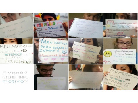 Compartilhando nas redes sociais fotos segurando cartazes com um motivo para sorrir, assim mostrando as pessoas o propósito do Interact e atingindo uma maior quantidade de publico.
